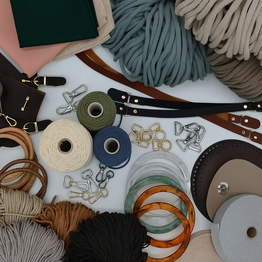 „Ich arbeite mit hochwertigen, nachhaltigen Garnen und ausgewählten Materialien wie Ledergriffen, Holz- oder Metallelementen.